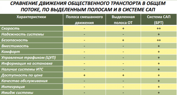 Если сравнивать строительство линии скоростных автобусов с метро или с ЛРТ с точки зрения затрат, то согласно оценке экспертов при одинаковых вложениях можно построить 426 километров дорог БРТ,  40 километров ЛРТ, семь километров метро.