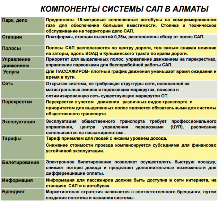 Слайд из ТЭО на строительство системы скоростных автобусных перевозок в Алматы
