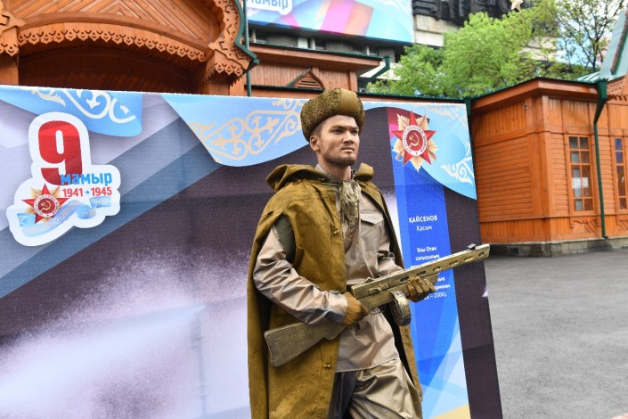 Помимо фотографий участников ВОВ, в шествии будут использоваться 10 фотомозаик героев ВОВ 1941-1945 годов, собранных из 164 фотографий действующих военнослужащих. С 20.00 до 22.00 состоится праздничный концерт "Тағзым!", в котором прозвучат песни военных лет. В 22.00 состоится праздничный салют.