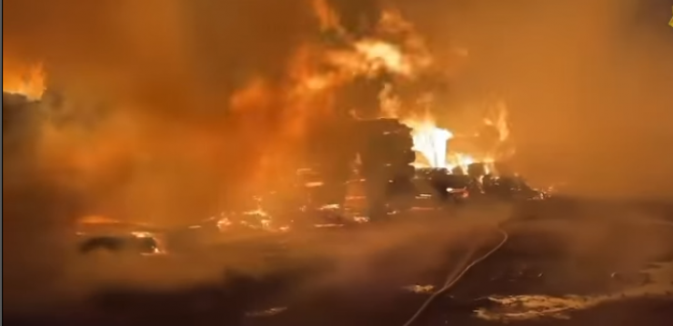 Строительный рынок загорелся ночью в Алматы Фото: ДЧС Алматы