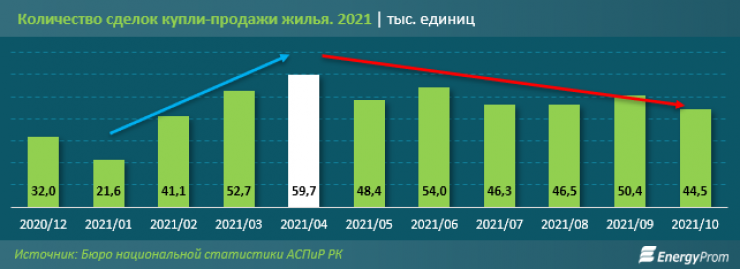 Аналогичная динамика наблюдается и в сделках купли-продажи жилья. С января по апрель текущего года количество сделок в секторе активно росло (в январе - 21,6 тысячи сделок купли-продаж, в феврале - 41,1 тысячи, в марте - 52,7 тысячи, в апреле - 59,7 тысячи). Подобный рост был связан также с появившейся возможностью у граждан изымать пенсионные накопления для покупки жилья и с "отложенным" прошлогодним спросом.
