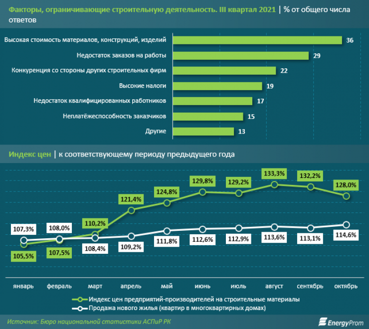 В стране наблюдается четкая корреляция увеличения цен на стройматериалы и на жилье, однако темпы роста стоимости материалов намного превышают темпы роста цен на недвижимость. Так, в октябре текущего года строительные материалы подорожали на 28 процентов, в то время как продажи нового жилья - на 14,6 процента", - поясняют аналитики.