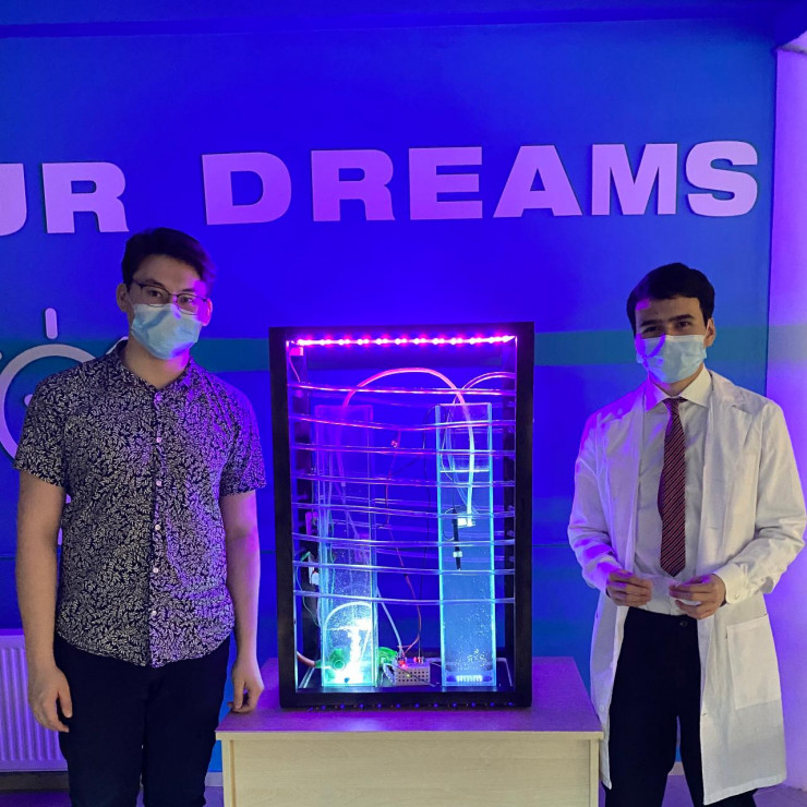 "Мой друг Алдияр Пазилов предложил сделать совместный проект в сфере биологии. Решили сделать фотобиореактор. Это небольшая установка, у нее внутри водоросли и она очищает воздух вокруг себя и вырабатывает кислород. Закупили микроводоросли. На создание установки ушло четыре месяца, нам помогал профессор НИШ, а потом начали тестировать.