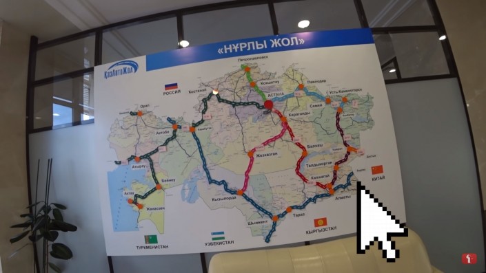 На другом видео Бердонгар вместе с сотрудником "Казавтожола" зафиксировал на карте сроки сдачи основных магистралей Казахстана.