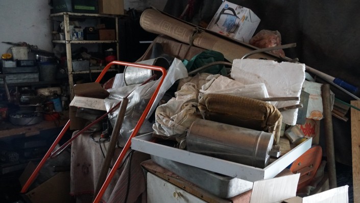 При входе в их дом натыкаешься на гору самых разных вещей. Чего тут только нет: свернутый ковер, коробки от бытовой техники, запчасти, старая мебель.