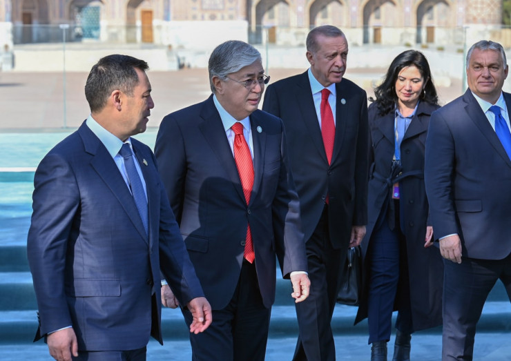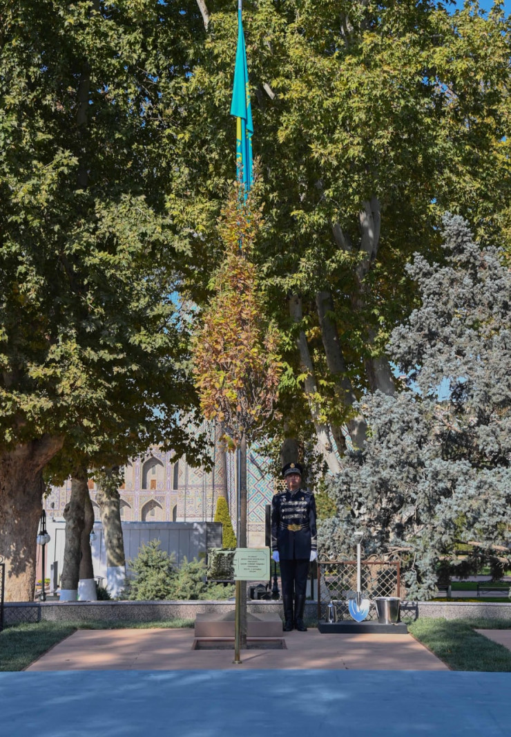 Президент вместе с лидерами стран - участниц саммита Организации тюркских государств принял участие в акции по посадке деревьев на площади Регистан в городе Самарканде.