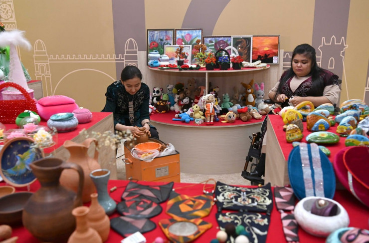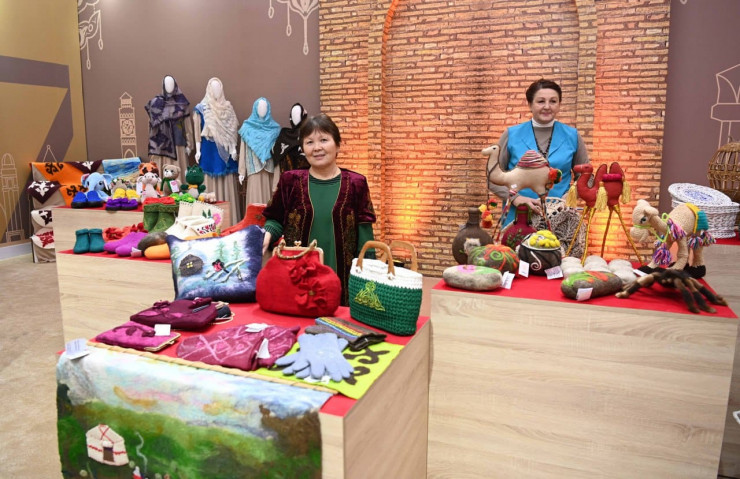На выставке 29 ремесленников выставили изделия из войлока, шерсти, кожи и дерева, керамическую и глиняную посуду, панно, национальные музыкальные инструменты, национальную одежду, конное снаряжение, а также ювелирные изделия.