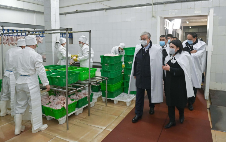 В ходе посещения птицефабрики "Аулие-Ата Феникс" в селе Мырзатай Байзакского района Президенту представили производственные цеха и выпускаемую продукцию.