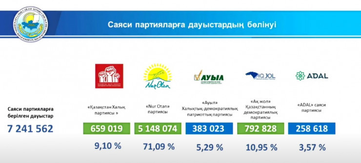 Nur Otan партиясы - 71,09 пайыз;