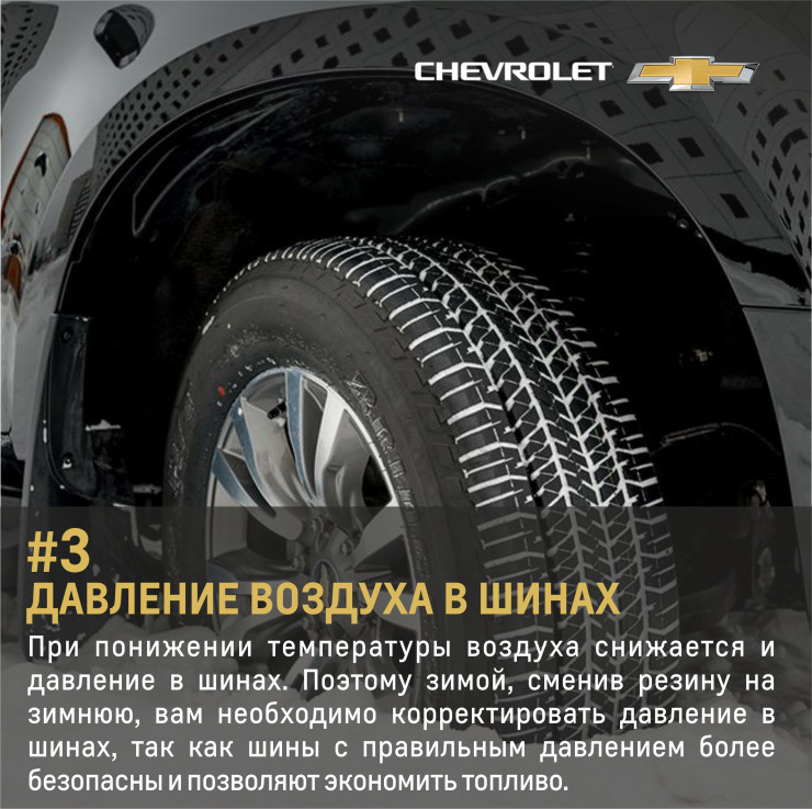 При понижении температуры окружающего воздуха снижается и давление в шинах. Поэтому зимой, сменив резину на зимнюю, вам необходимо корректировать давление в шинах, так как шины с правильным давлением более безопасны и позволяют экономить топливо.
