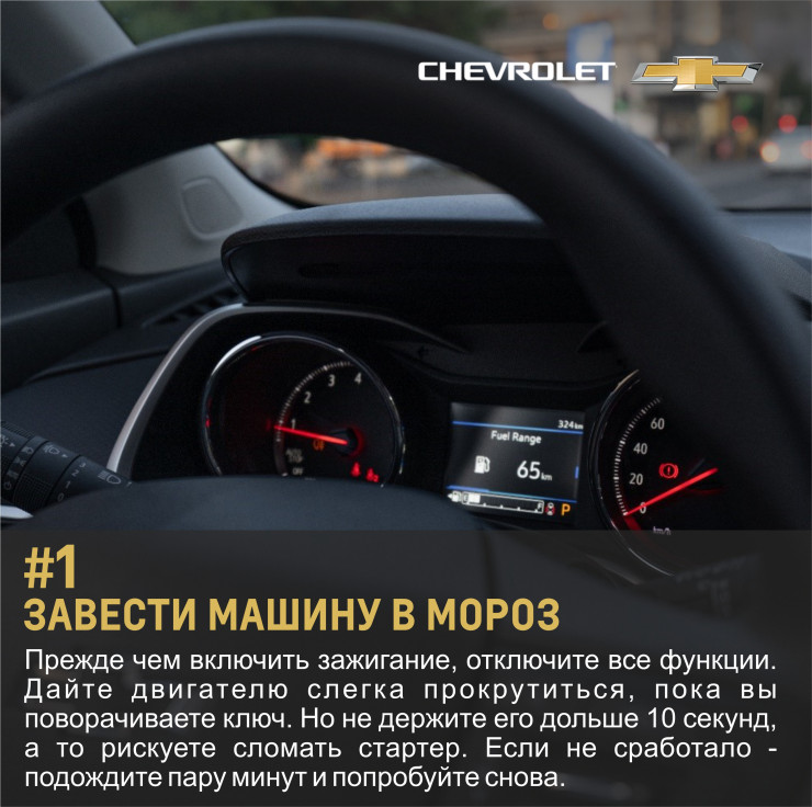 Конечно, если вы владелец современного автомобиля, который оснащен умной системой климат-контроля, то в этом плане вам будет значительно легче. К примеру, на таких автомобилях, как Chevrolet Tracker, Chevrolet Equinox, Chevrolet Trailblazer, Chevrolet Trаverse, Chevrolet Malibu и Chevrolet Tahoe, имеются функции обогрева боковых зеркал, а мощная печка быстро отогреет лобовое стекло и дворники.