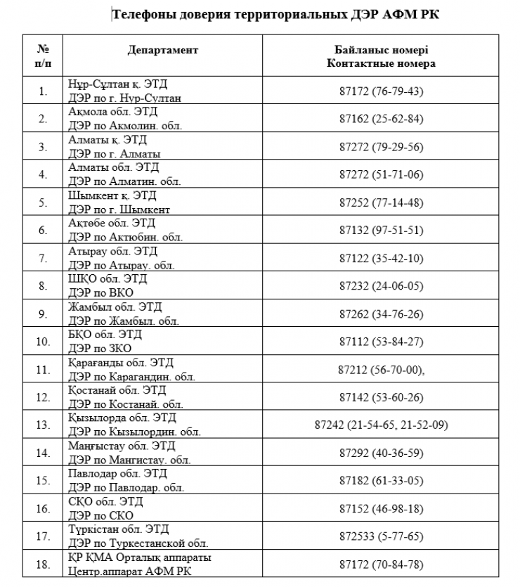 "Призываем сообщить в АФМ или территориальные департаменты по указанным номерам телефонов доверия в круглосуточном режиме. По каждому такому факту агентством будет дана соответствующая правовая оценка", - пообещал он.