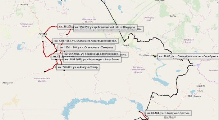 Участок дороги республиканского значения Ушарал - Достык в Алматинской области (83-184 километр, село Коктума - станция Достык) остается закрытым с 9 февраля.