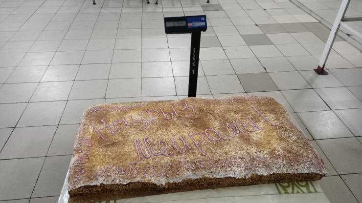 Осужденные учреждения АК-159/5 в преддверии празднования Наурыза испекли 57-килограммовый торт. На его выпечку ушло 150 яиц, пять килограммов сахара, 12 литров молока, 15 килограммов муки и три килограмма сливочного масла. На выпечку коржей ушло шесть часов, также пять часов заняло украшение праздничного торта.