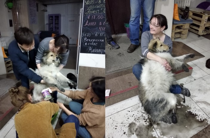"Надежды почти не оставалось, мы знали, что собак в городе крадут на убой. Около двух часов ночи мы обговаривали, что будем делать завтра, и уже собирались расходиться. Вдруг позвонила женщина и сообщила, что пес находится в районе ЖБИ, а ее муж пытается отбить его у бичей. Это очень отдаленный район города, мы даже не предполагали, что Смайл мог туда попасть. Как только услышали новость, кинулись к машинам", - продолжает Инна.