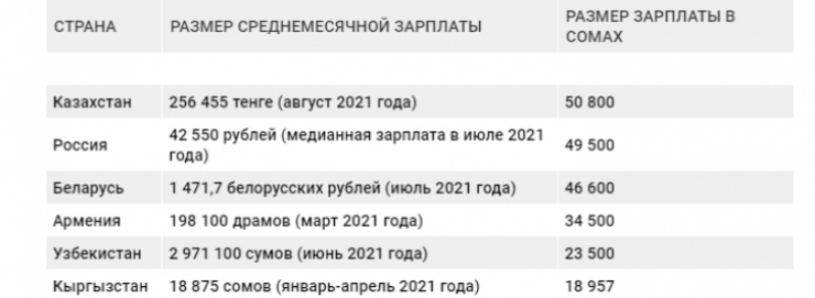 У российских граждан, например, этот показатель ниже - 42 550 рублей (около 248 тысяч тенге), в Кыргызстане средняя зарплата самая низкая - 18 957 сомов (около 95 тысяч тенге).