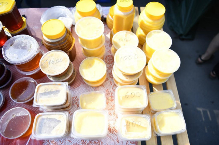 Также на прилавках местных крестьянских хозяйств были выставлены масло, молоко, кумыс, мед, мясо птицы и другая продукция.