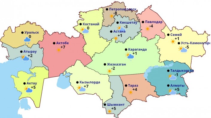 По данным специалистов, на большей части территории Казахстана с прохождением атмосферных фронтов пройдут осадки, лишь на севере республики погода будет без осадков. Местами сохраняются туман, гололед, гроза, усиление ветра.