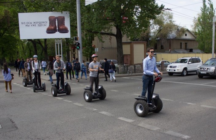 В Алматы запустили туристические экскурсии на сигвеях (электрическое самобалансирующееся транспортное средство с двумя колесами). Об этом корреспонденту Tengrinews.kz рассказал организатор проекта Артем Филиппов.