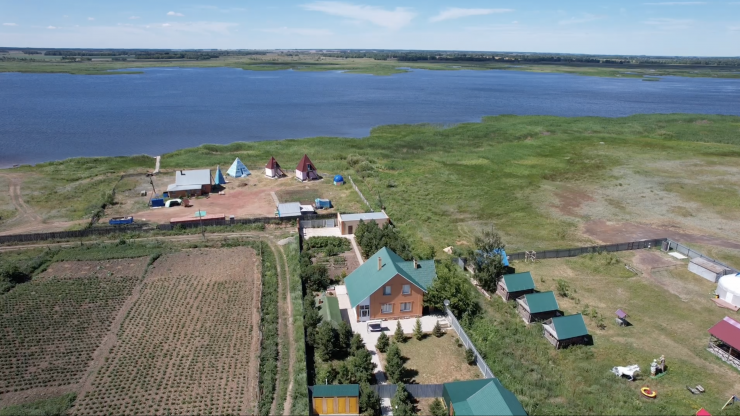 Первой локацией на нашем маршруте стало село Талкара в Аккольском районе. Оно находится не так далеко от столицы - в 139 километрах от города, зато какая здесь живописная природа. Густой лес и большое чистое озеро. Тут и покупаться можно, и позагорать на пляже, и порыбачить, и погулять в лесу по грибы. Для туристов здесь на выбор есть несколько гестхаусов, один из которых мы и посетили. Карту с маршрутом можно посмотреть здесь.