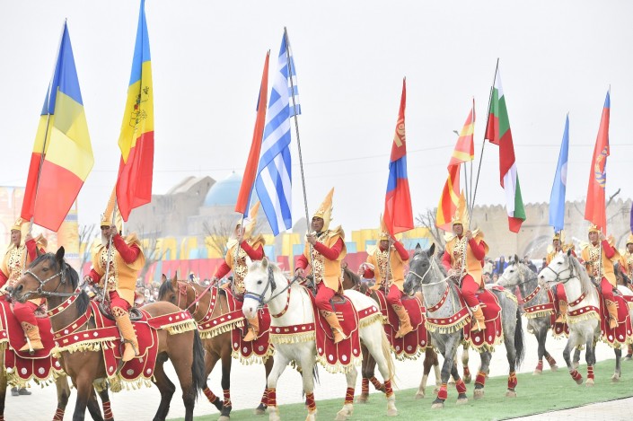 Масштабное действо развернулось во вторник, 21 марта, в одном из древнейших городов страны. Более 10 тысяч гостей встречали сегодня в Туркестане на праздновании Наурыза. Возле Мавзолея Ходжи Ахмета Яссауи был воссоздан этноаул: установлены 33 юрты, национальные качели алты-бакан, дастарханы, которые ломились от национальных угощений: казы-карта, жал-жая, кумыса, шубата, курта, иримшика, жента и многого другого. Только плова было приготовлено более тонны и более 1500 литров наурыз-коже. Таким образом южно-казахстанцы пытались показать гостям из 15 стран, что Туркестан на самом деле является культурной столицей Тюркского мира.