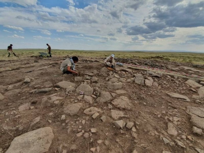 Археологи исследовали каменный жертвенник с остатками угольков и костями животных. На могильнике эпохи развитой бронзы Шатырбулак-2 обнаружены остатки детского захоронения.