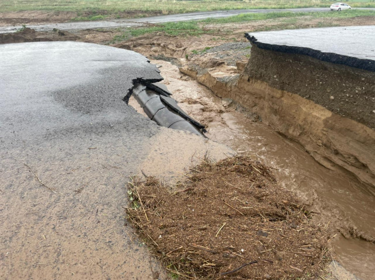 Напомним, асфальт провалился на дороге в Алматинской области из-за сильного дождя.