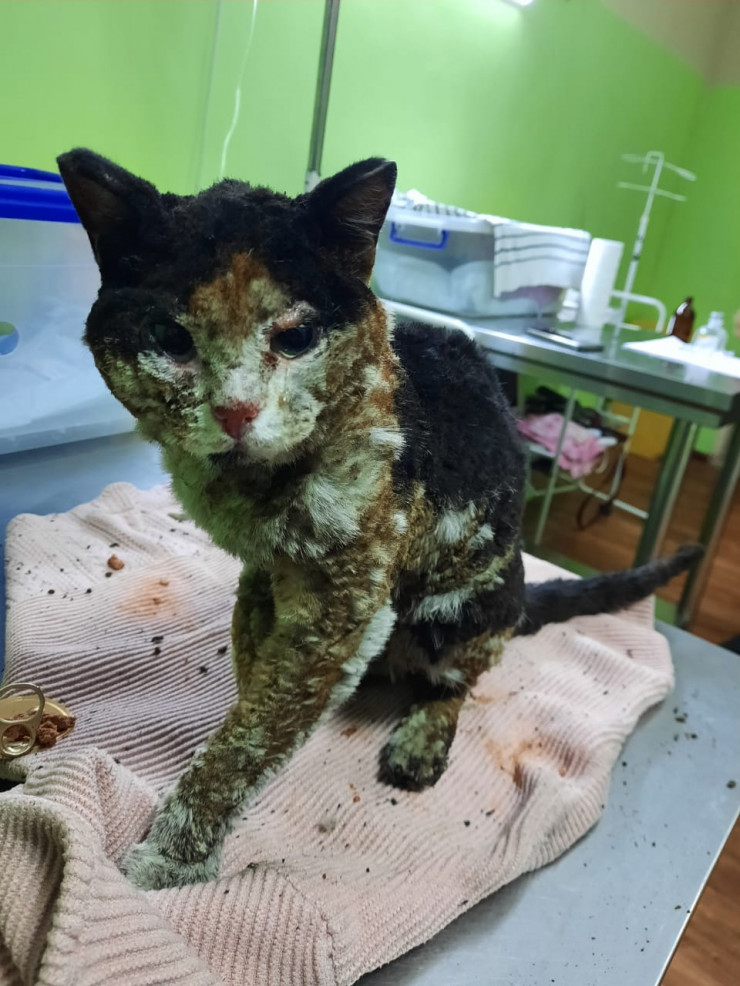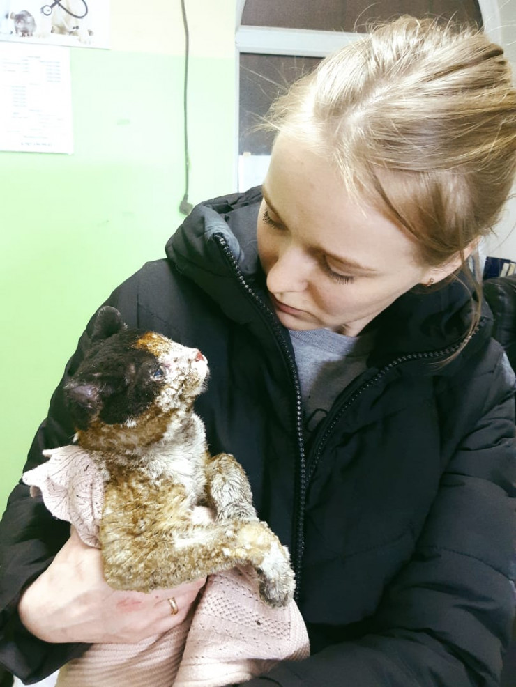 Фотографию животного с обгорелой шерстью опубликовали в социальной сети, после чего за кошкой выехала волонтер zverohelp_astana Вероника Бродецкая.