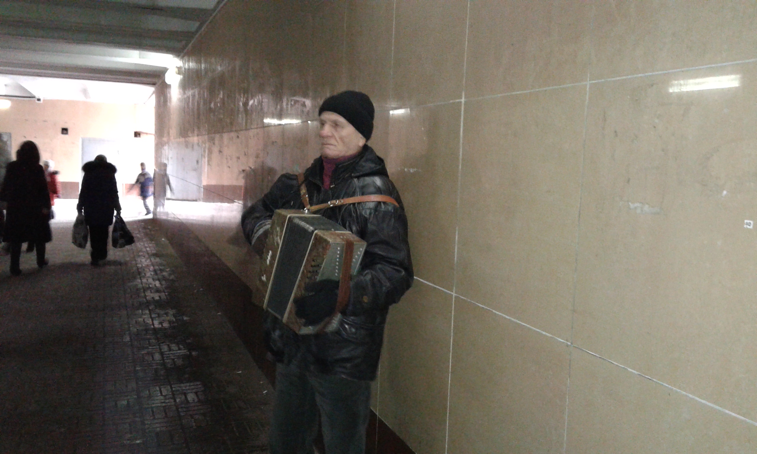 "Ко мне вчера один (полицейский - Прим. автора) подошел, сказал про этот закон . Я ему говорю, что читал об этом законе. Он сказал: "Ты можешь здесь играть, если не будешь приставать к людям". Но я просто стою, пою, я никого не прошу мне деньги кидать, и он меня не тронул, говорит, главное не хулигань", - рассказывает Валерий. Он вместе с женой снимает комнату в общежитии за 40 тысяч тенге. Несмотря на то, что заработанных в подземном переходе денег хватает лишь на аренду жилья и еду, говорит, что это все равно лучше, чем работа сварщиком.