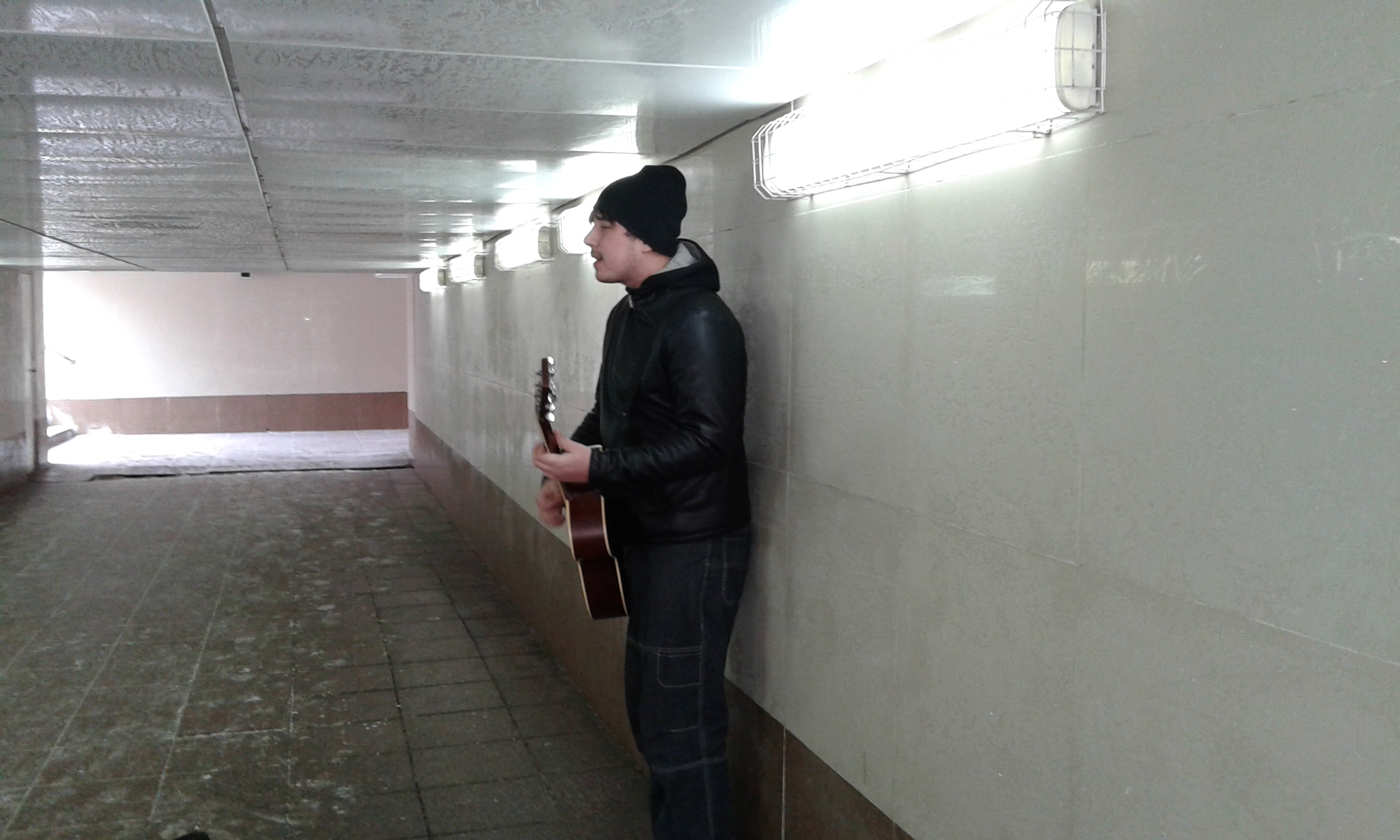 В подземном переходе в районе Конгресс-холла сварщик по образованию Валерий играет и поет на гитаре уже третий год.