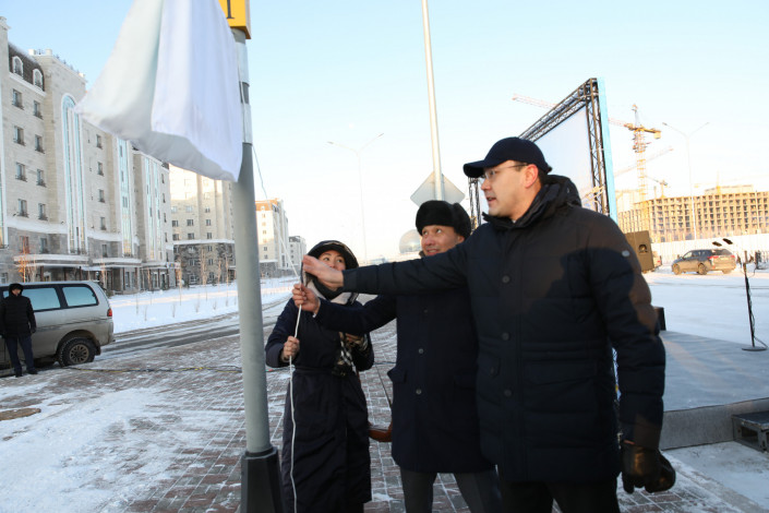 Торжественную ленточку по случаю открытия улицы перерезали заместитель акима столицы Бахтияр Макен и сын Фаризы Онгарсыновой Алмас Онгарсынов.