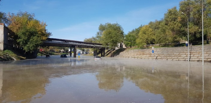 В Алматы произошел порыв теплотрассы. Улицу Бокейханова залило горячей водой. Сейчас на месте работают сотрудники аварийных служб. Tengrinews.kz публикует кадры с места ЧП.