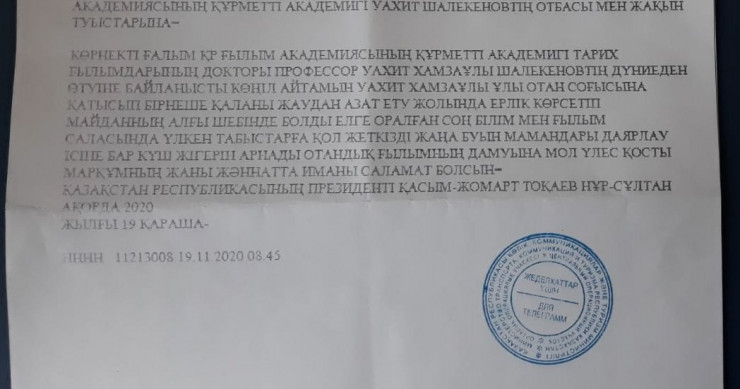 "Умер папа вчера, только что его похоронили", - сообщил Булат Шалекенов в беседе с корреспондентом.