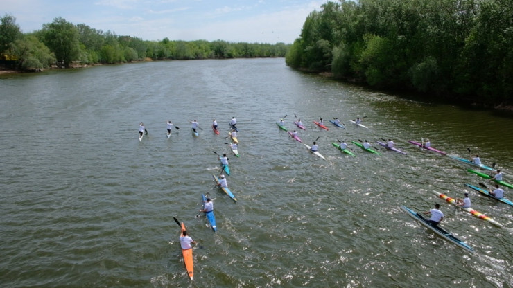 Кроме этого, в парке культуры и отдыха байдарочники устроили заплыв, посвященный Дню Победы. На воде они выстроились цифрой 75. Ветераны спорта и спортсмены устроили в честь праздника велопробег.