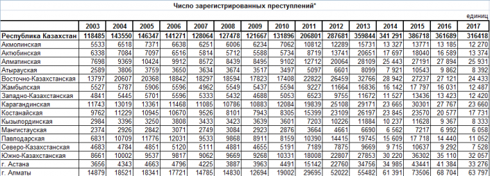 По данным Комитета по правовой статистике и специальным учетам Генеральной прокуратуры Республики Казахстан