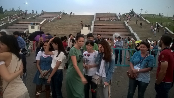 В конце вечера в Павлодаре резко испортилась погода. Но, несмотря на моросящий дождь, люди не торопились расходиться. Павлодарцы, не сдерживая эмоций, плакали под дождем.