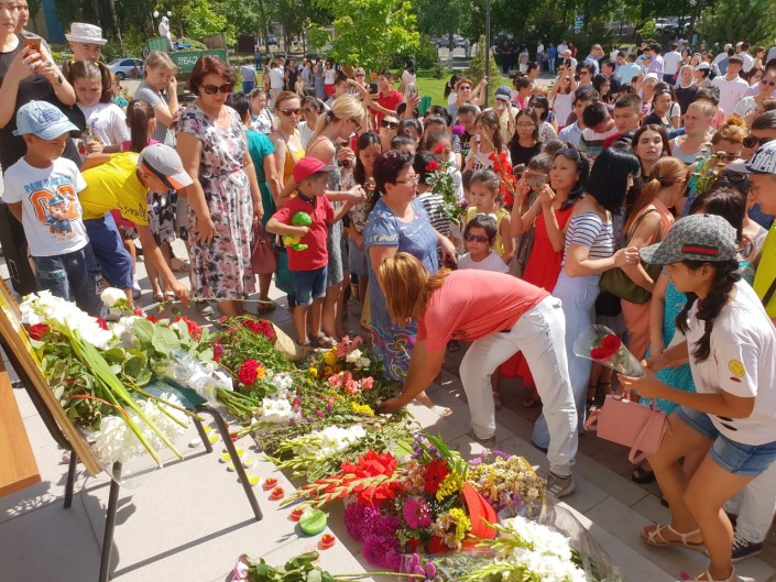 Семей не остался в стороне от трагедии. На набережной Иртыша собрались люди разных возрастов, они пришли выразить свои соболезнования и скорбь по погибшему спортсмену. Многие держали в руках фотографии Дениса.