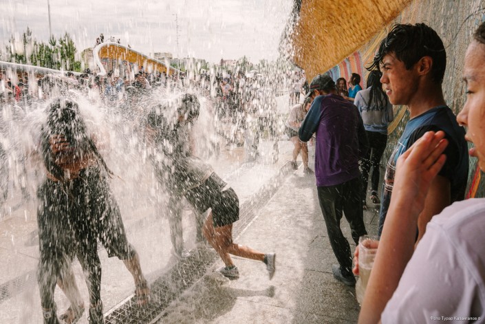 Молодые жители главного города Казахстана буквально заполонили Центральный парк, чтобы спастись от жары в фонтанах. Со стороны это выглядит как какое-то безграничное веселье.