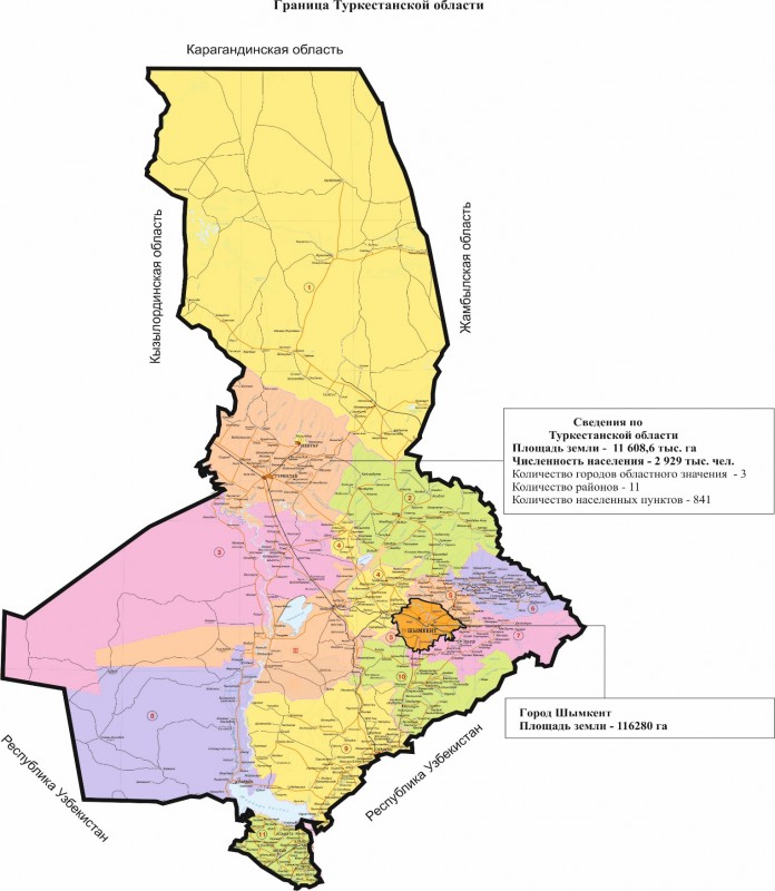 "Установить границу Туркестанской области путем исключения из ее территории земель города Шымкента общей площадью 116 280 гектара согласно приложению к настоящему постановлению. Акимату Туркестанской области принять меры, вытекающие из настоящего постановления. Настоящее постановление вводится в действие со дня его первого официального опубликования", - говорится в постановлении правительства.