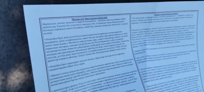 Собрание началось около 10.00 по местному времени в сквере за кинотеатром "Сары Арка". Организатором выступил активист Альнур Ильяшев. Ранее он получил разрешение от властей города на проведение мирного митинга.
