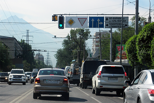 На пересечении улиц Розыбакиева и Сатпаева поворот налево теперь запрещен при движении по Розыбакиева вниз (в северном направлении). Соответствующие знаки уже установлены на светофоре, изменена и разметка на асфальте. Однако если двигаться в противоположном направлении по Розыбакиева вверх (на юг), левый поворот разрешен, здесь ничего менять не стали.