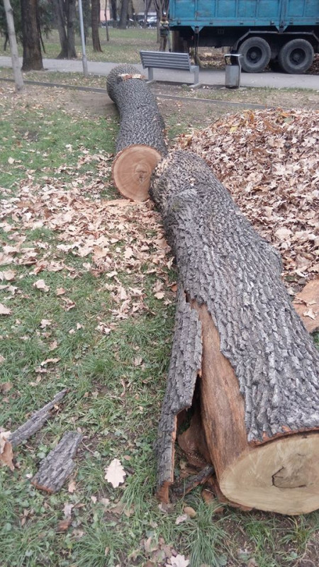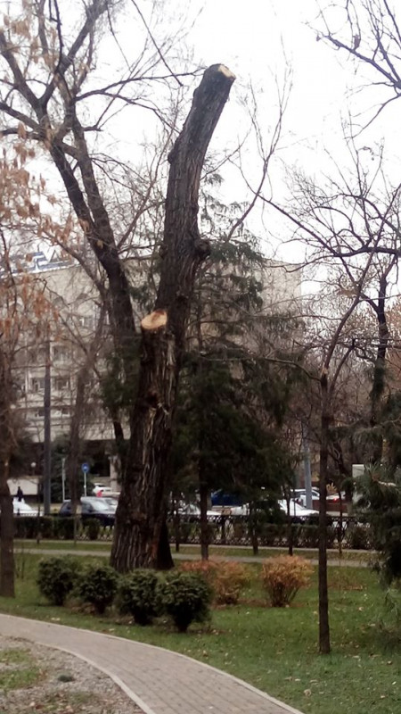 Фотографии поваленных стволов появились в группе "Защитим Алма-Ату" в Facebook. Автор поста утверждает, что вековые деревья не просто спиливают, а сразу выкорчевывают, чтобы "нельзя было определить состояние дерева".