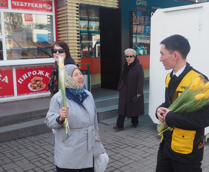 В автобусах Алматы контролеры "Онай" дарили женщинам цветы