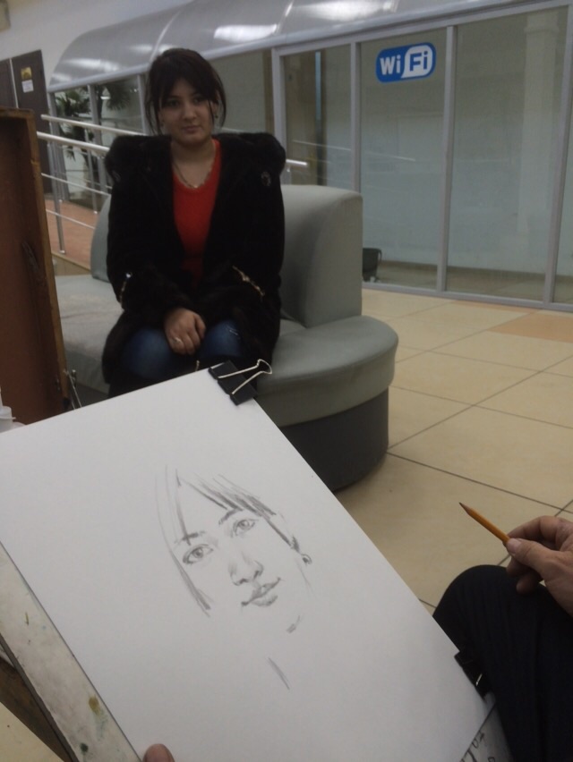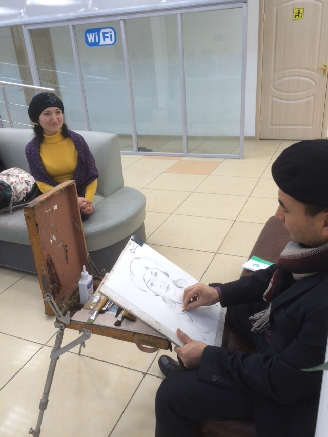 В ЦОНах Алматы и Астаны рисовали портреты клиентов Одна из работ художника в Алматы. ©СТВ