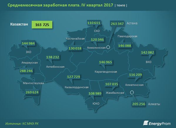 В последнем квартале прошлого года среднемесячная заработная плата каждого работающего казахстанца составляла в среднем 163,7 тысячи тенге - это на 5,9 процента больше, чем годом ранее. В то же время с учетом инфляции покупательская способность заработных плат сократилась к аналогичному периоду годом ранее на 1,4 процента.
