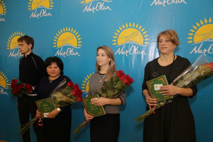 На собрании были вручены партийные билеты новым членам Nur Otan. И награждены победители областного этапа республиканского конкурса "Лучшая первичная организация".