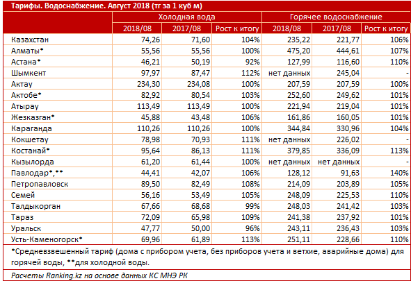 По итогам августа в среднем по Казахстану холодная вода обходилась жителям республики в 74,3 тенге за кубометр - это на 3,7 процента больше, чем годом ранее, передает Tengrinews.kz со ссылкой на исследование Ranking.kz.