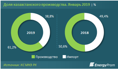 По итогам января текущего года доля казахстанского производства в сегменте легковых авто увеличилась с 50,6 до 61,2 процента. Доля импорта, соответственно, сократилась: с 49,4 до 38,8 процента за год.