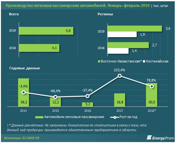 По итогам первых двух месяцев текущего года казахстанский автопром выпустил 5,6 тысячи авто. Это на 34,6 процента больше, чем годом ранее.