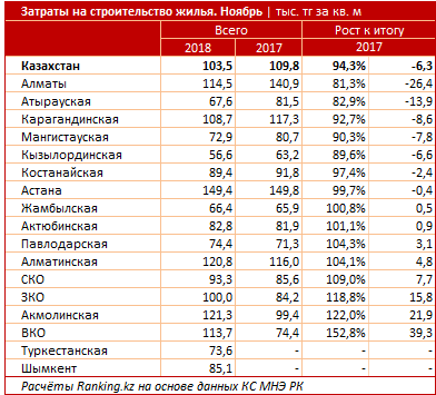 Самый высокий уровень оптимизации строительства наблюдается в Алматы: себестоимость одного "квадрата" упала за год на 26,4 тысячи тенге.